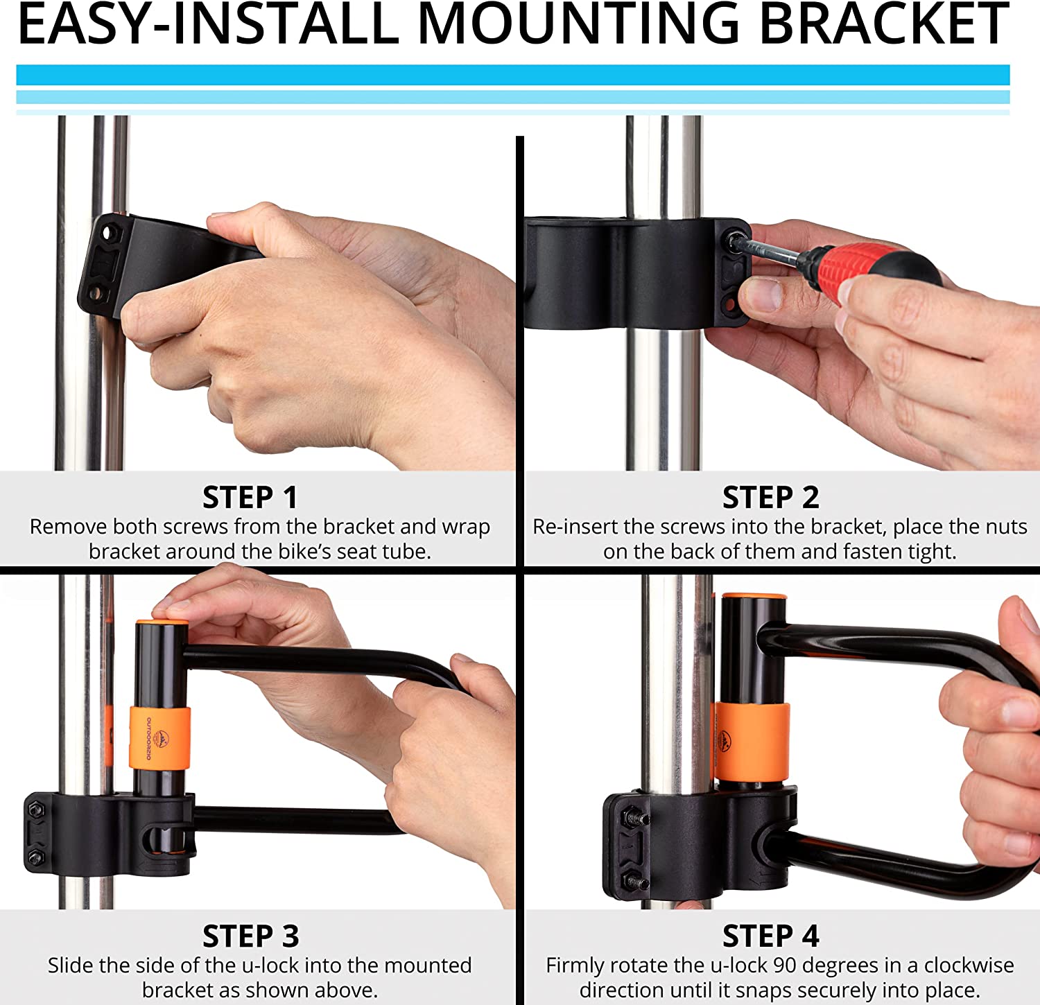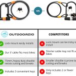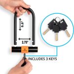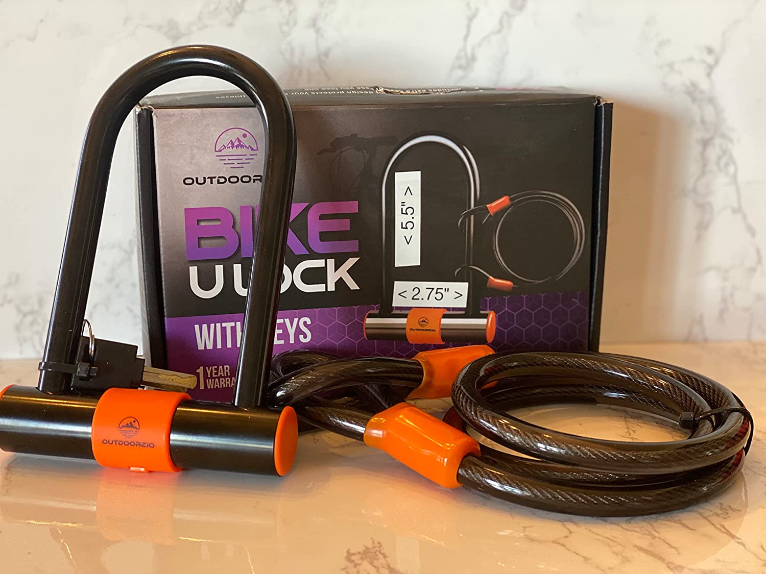 Outdoorzio Bike U Lock Keep your bike safe any time, anywhere! Secure your bike anywhere with this heavy-duty, weather-resistant bike lock in U shape. Featuring a 14mm robust shackle plus 4 ft (1.5m) PVC-covered steel cable, the bike lock is constructed with added layers of protection to provide reliable security under all conditions. Lock your bike in place and deter thieves: Pick-Resistant Lock Pull and Drill Resistant Double Bolt Crossbar Locking Mechanism Reinforced Crossbar Durable and All-Weather Materials PVC-covered steel protects your bike from scratches and keeps the cable secure from dust and weather corrosion. The debris cover keeps the lock clean and easy to open and close with the copper keys. Three (3) copper keys are included to ensure you always have a spare when needed. We care deeply about our environment, so our locks are constructed with environmentally safe ABS engineering plastics and rubber. Quick to install and remove, the convenient quick-release mounting bracket provides easy and convenient installation, so it’s fast and easy to remove and store the lock when you are on the go. Easy and strong lock Mounting bracket with 360 degrees rotation Quick-release mounting bracket Quick maintenance tip: wash off any salt, dust or mud after exposure to extreme conditions, and lubricate your lock regularly. Secure and reliable—keep your bike safe anywhere you go!