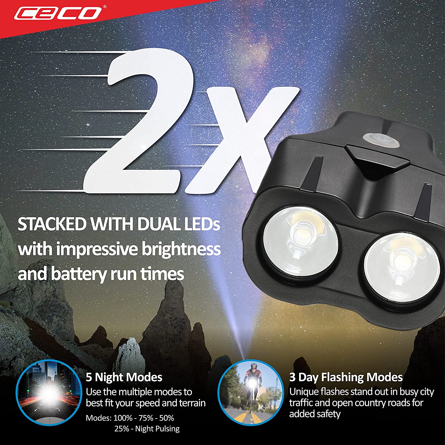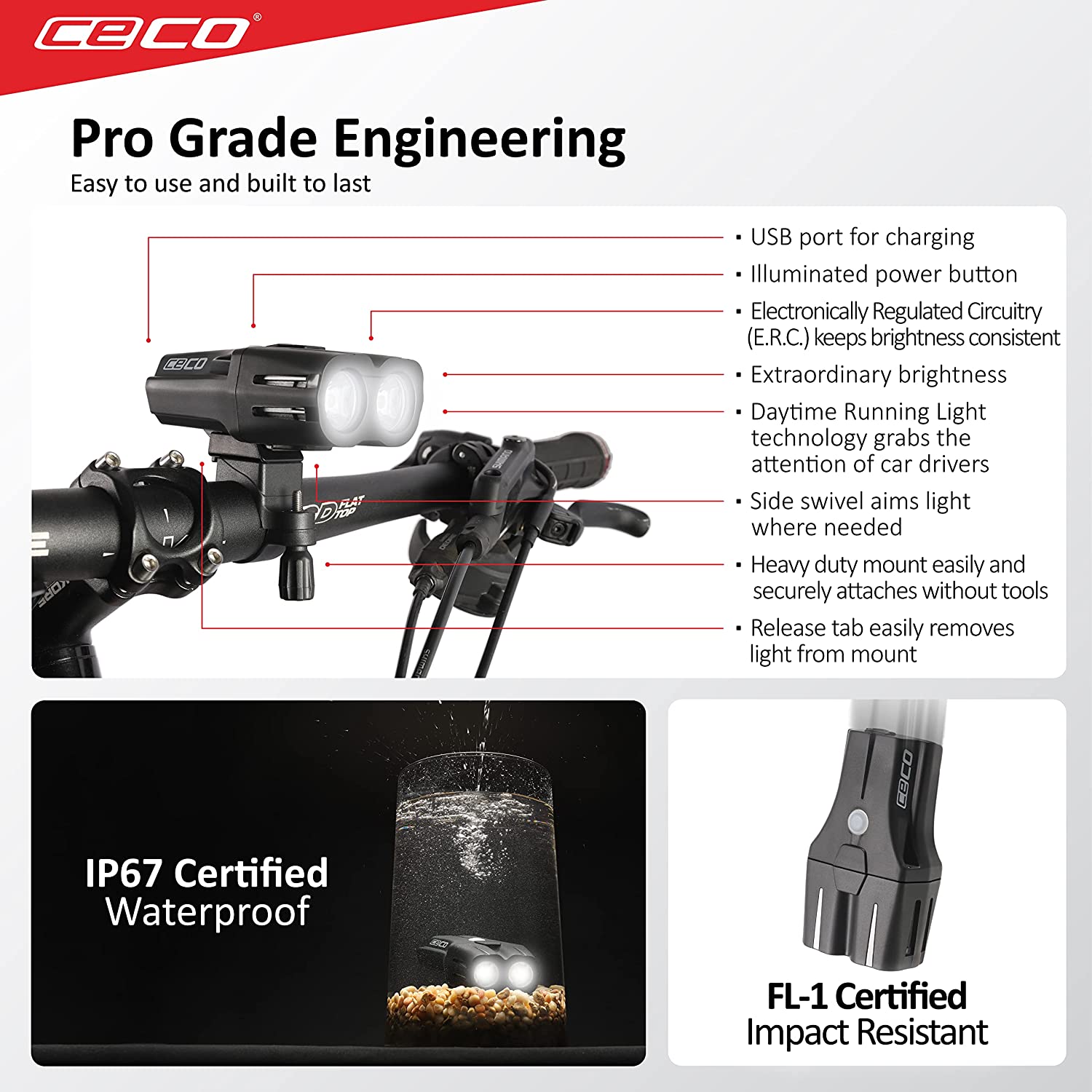 CECO-USA: 2,000 Lumen USB Rechargeable Bike Light – Tough & Durable IP67 Waterproof & FL1 Impact Resistant– Super Bright F2000 Bicycle Headlight – for Commuters, Road Cyclists & Mountain Bikers