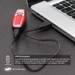 - VERSATILE NIGHT & DAY MODES – 5 Night modes cover any speed and terrain, 3 unique Flashing Day modes make you stand out in high city traffic and open country roads, 1 Walking Flashlight mode for handy use. WHEN BATTERY IS LOW THE LIGHT FLASHES EVERY 25 SECONDS indicating 10 to 20 minutes of runtime left