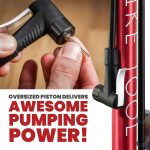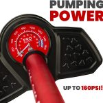 - Super Fast Inflation – Extra long hose of 1100mm as well as an oversized piston deliver awesome pumping power for high volume to pressures up to 160 psi / 11 BAR and over.