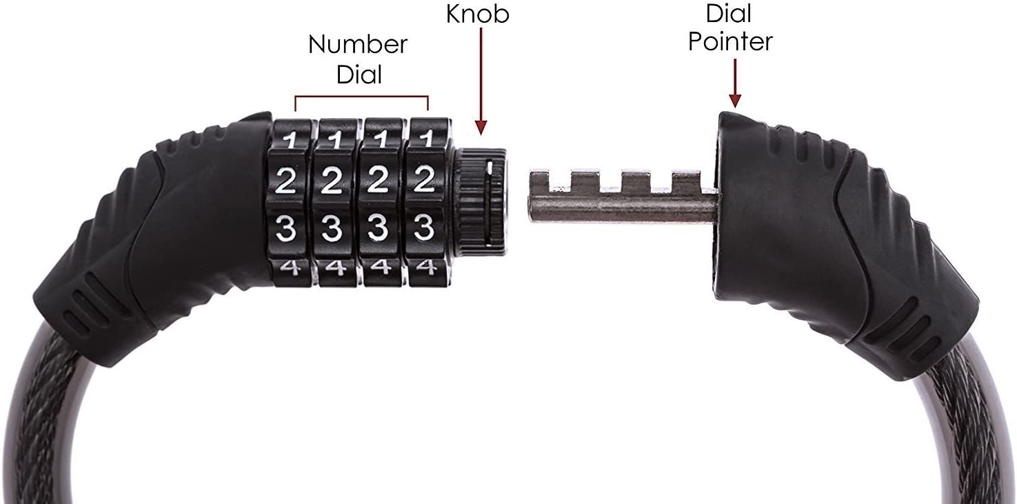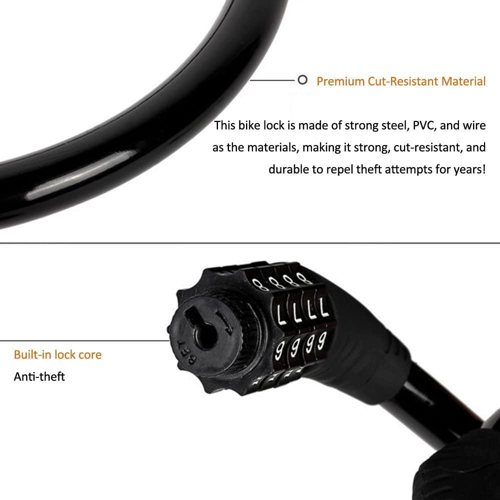This is a resetable combination lock, you can reset the combination as often as you like. ???? Operating Instructions ???? This lock is preset to operate at 0000.To set your own combination,follow the steps below. ♻️ Dial the combination wheels to 0000 and withdraw the cable. ♻️ Turn the knob 90 degrees clockwise to the designated position. ♻️ Reset the combination wheels to the desired combination,making sure the numbers are lined up with the pointer. ♻️ Have selecting your combination numbers,turn the knob back to the original postition in a counterclockwise direction. ♻️ The new combination is now set. ♻️ Repeat the 1-5 steps above to reset the combination anytime you like. ❤️ Note❤️ Pls do not forget the password. Otherwise, we can not help you. SCRATCH PROOF — Protective ABS coating prevents our bicycle lock from scratching your bicycles, grills, golf carts, luggage, etc. WEATHER RESISTANT — Bike locks withstand the effects of wind, rain, sun & rust. ◕‿◕ Durable, Super anti-cut, Trustworthy; no keys, Password adjustable, easier to use. ◕‿◕ Engineering plastic shell and flexible steel cables, solid durable, no cracking at low temperatures, High temperature environments without distortion. ◕‿◕ Cable and hose, non-toxic and tasteless , Symbol of national and EU environmental standards and requirements. ◕‿◕ Integrated 4-digit resettable combination lock with indexed number dials for error-free combination setting, the original password is 0000 and easy to reset. ???? Size ????2′(0.6m) long x 1/2″ (12mm)diameter.